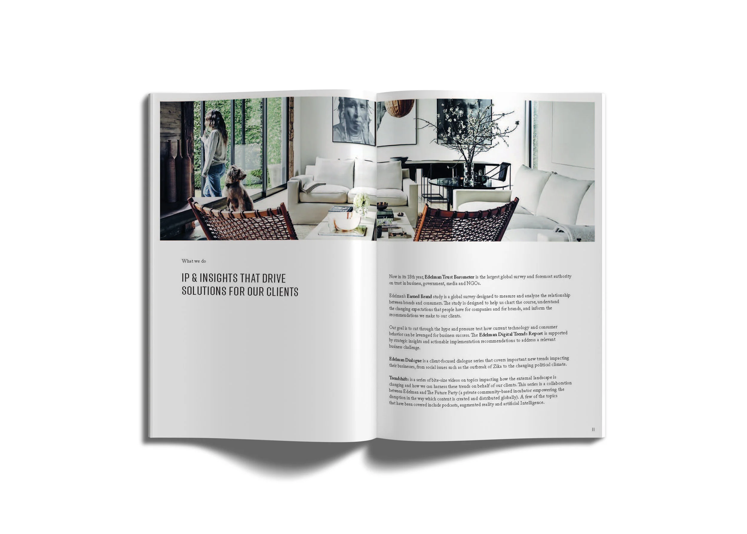 Bowers & Wilkins was looking for a new agency to help them launch a suite of high-end speakers. To help us stand out from the competition, we wanted to give them more than a standard capabilities deck. As the design lead on the pitch, it was my job to show that Edelman understood the Bowers & Wilkins design aesthetic: classy, luxurious and understated. In addition to our pitch deck, I developed a premium-feeling leave behind book.